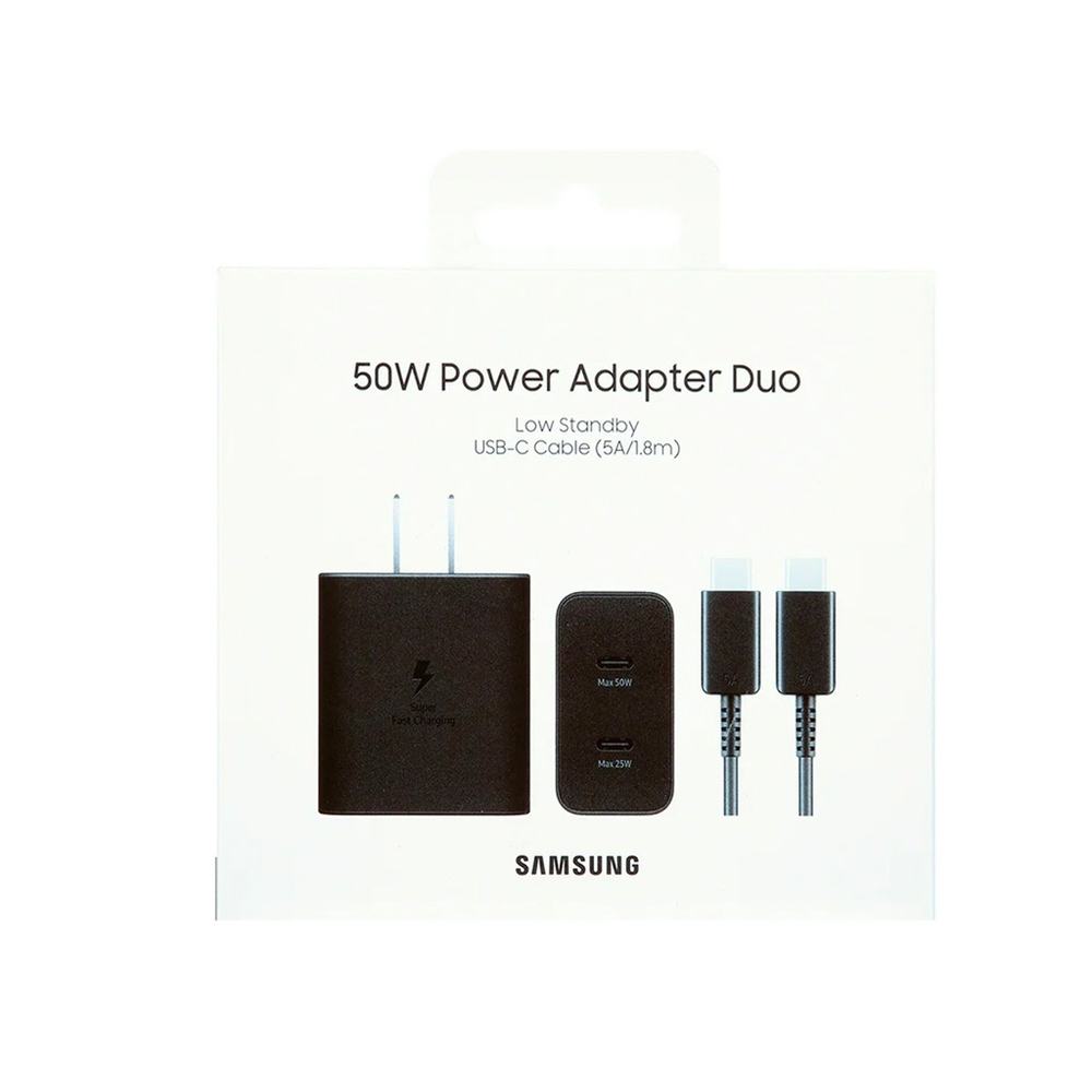 CARGADOR SAMSUNG DUO CARGA SUPER RAPIDA 50W CON CABLE NEGRO