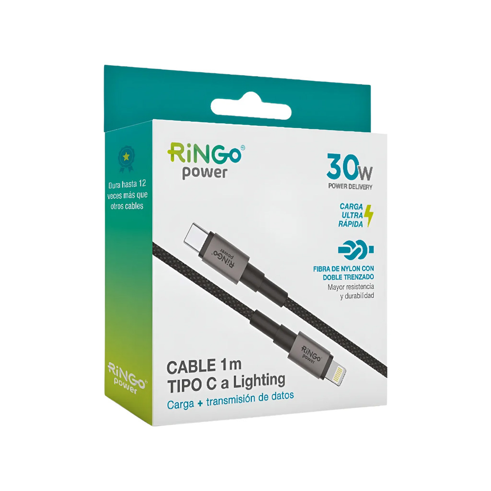 CABLE RINGO POWER 30W TIPO C A LIGHTNING NEGRO